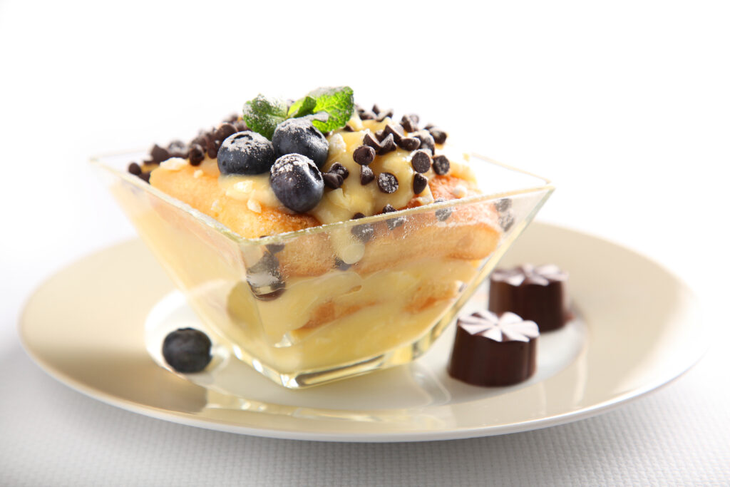 ZUPPA INGLESE WITH GREEN TEA, WHITE CHOCOLATE AND BLUEBERRIES