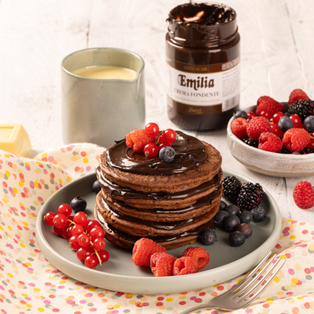 PANCAKES AL DOPPIO CIOCCOLATO CON FRUTTI ROSSI