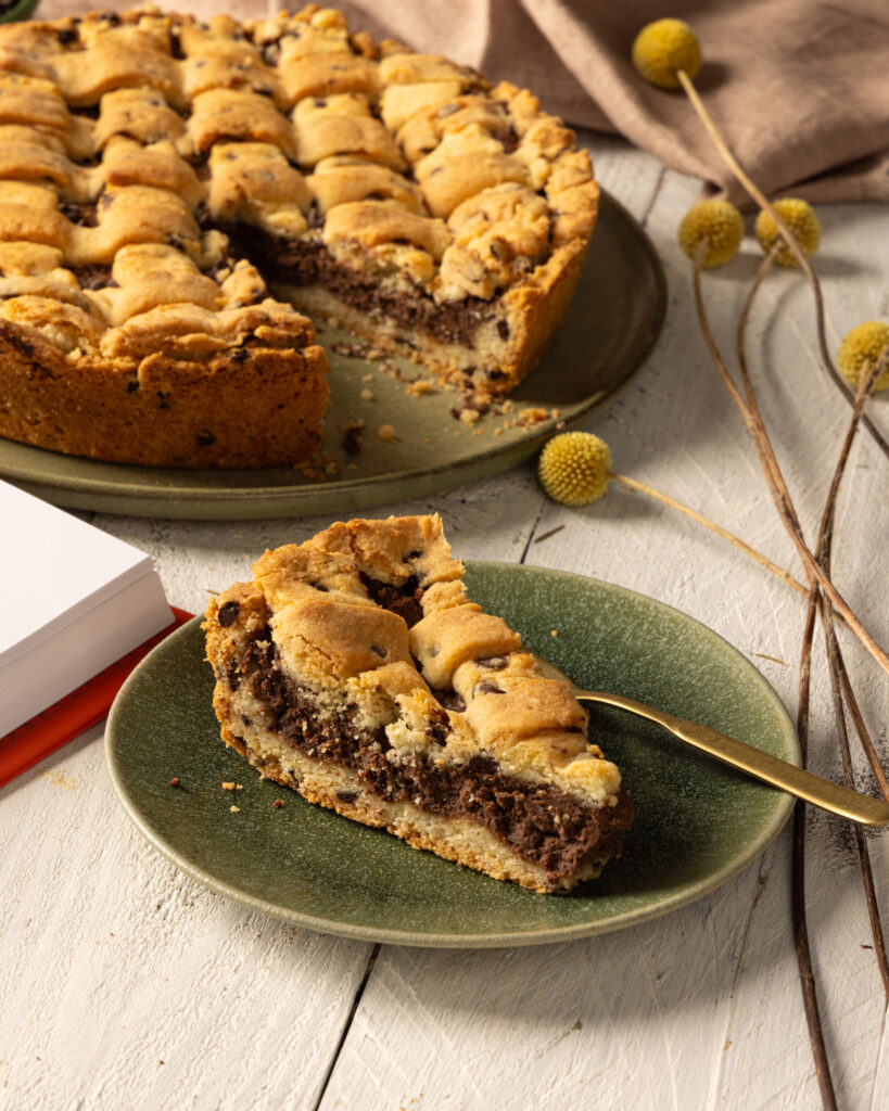 CROSTATA CON GOCCE DI CIOCCOLATO FARCITA CON CREMA DI RICOTTA E CIOCCOLATO 70%